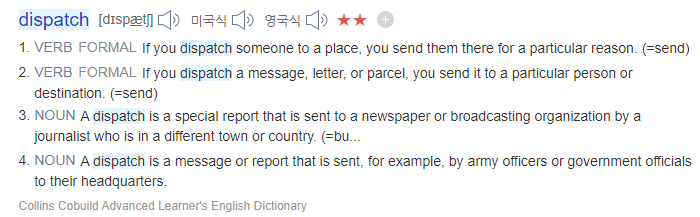 - 물론 우리나라 한정 dispatch라는 단어는 영원히 언론사에게 밀릴 수 밖에 없다 ㅠㅠ