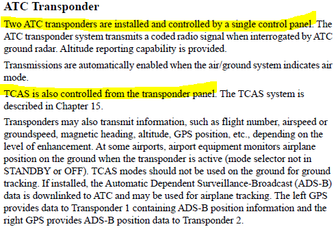 - 트랜스폰더가 둘 다 FAIL이면 TCAS와 ADS 모두 작동하지 않는다. 그러나 TCAS나 ADS가 안된다고 해서 트랜스폰더가 죽었다고 단정할 순 없다. 기본 장치인 트랜스폰더는 문제가 없는데 거기에 얹혀진 TCAS 또는 ADS 관련 기능에 이상이 있을 수 있기 때문.