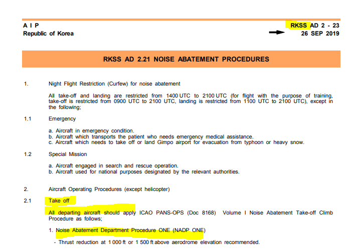 - 김포공항도 NADP1 적용한다. 조종사가 FMC에 acceleration height를 입력하면 오토파일럿이 알아서 특정 고도에 도달했을 때 속도를 제어한다.