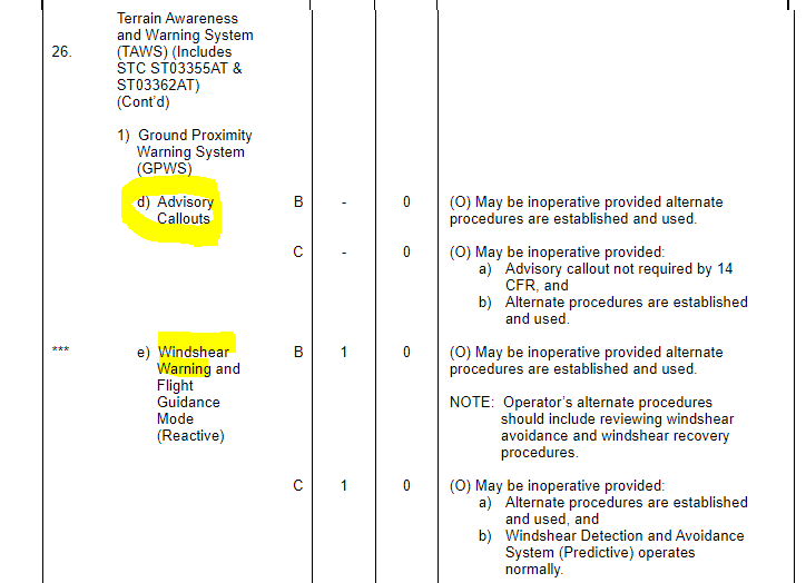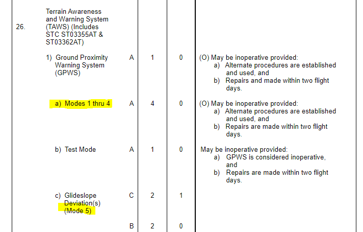 - GPWS 전체를 담당하는 컴퓨터가 고장나면(B738 MEL 34-26-01) 상기 모든 GPWS 기능이 고장난다. 따라서 항공기 자세나 고도에 문제가 없는지 조종사가 계속 살펴야 함.