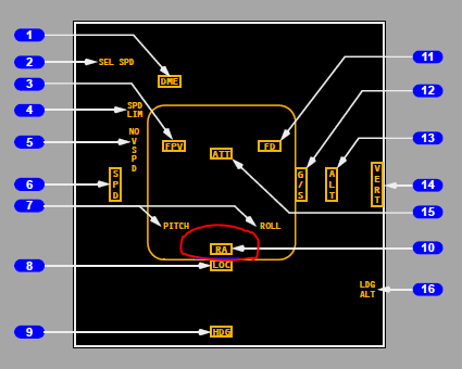 - PFD에 시현되는 정보와 관련된 시스템에 문제가 생기면, PFD 해당 위치에 amber색 경고등이 뜬다. 계기판에 무슨무슨 flag가 뜬다라는 말이 그 의미였음.
