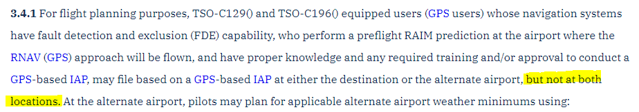 - 요악 : For flight planning purposes, GPS users may file based on a GPS-based IAP at either the destination or the alternate airport, but not at both locations.